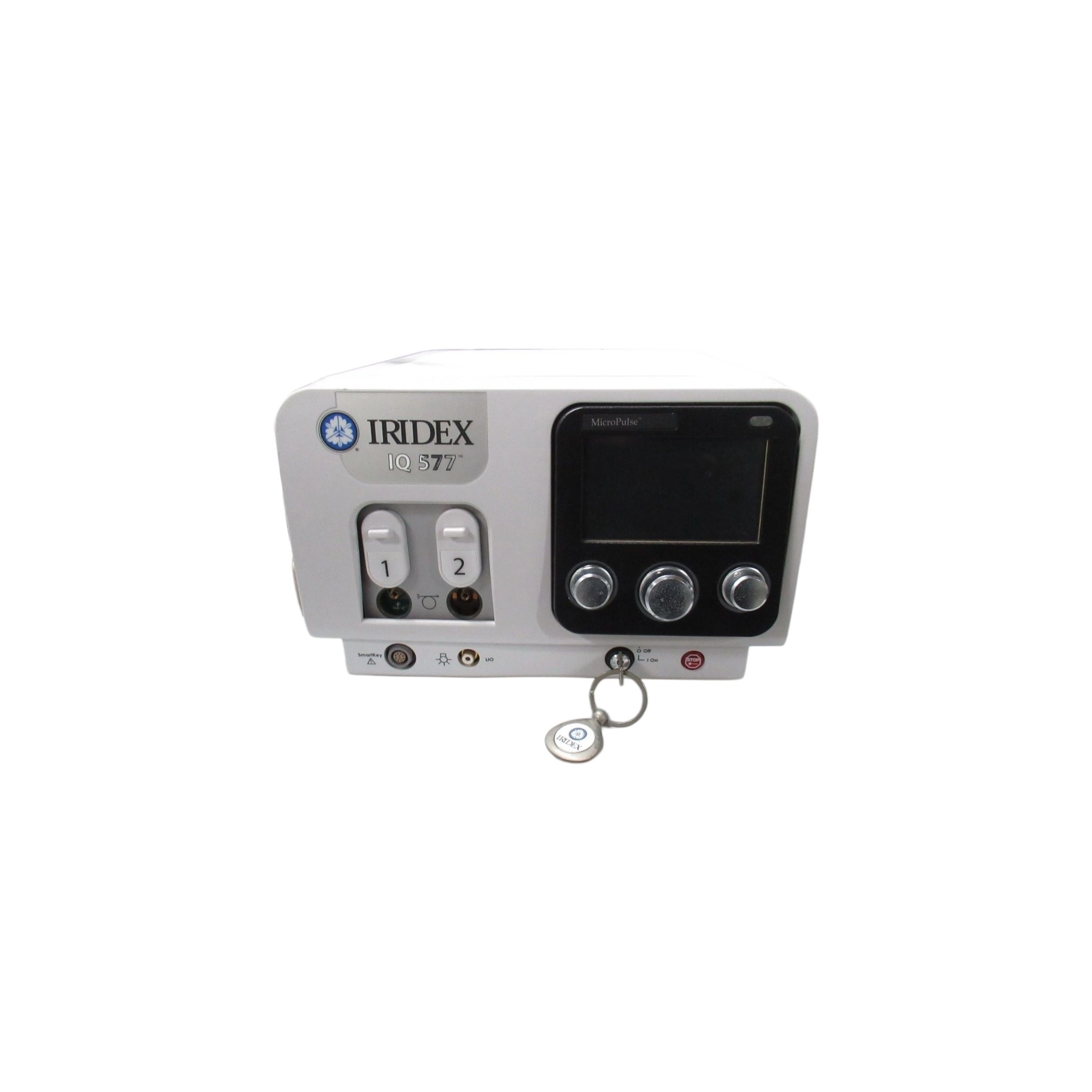 Laser jaune micropulsé Iridex IQ-577 de l'année 2021, autonome, vendu sans lampe à fente intégrée.